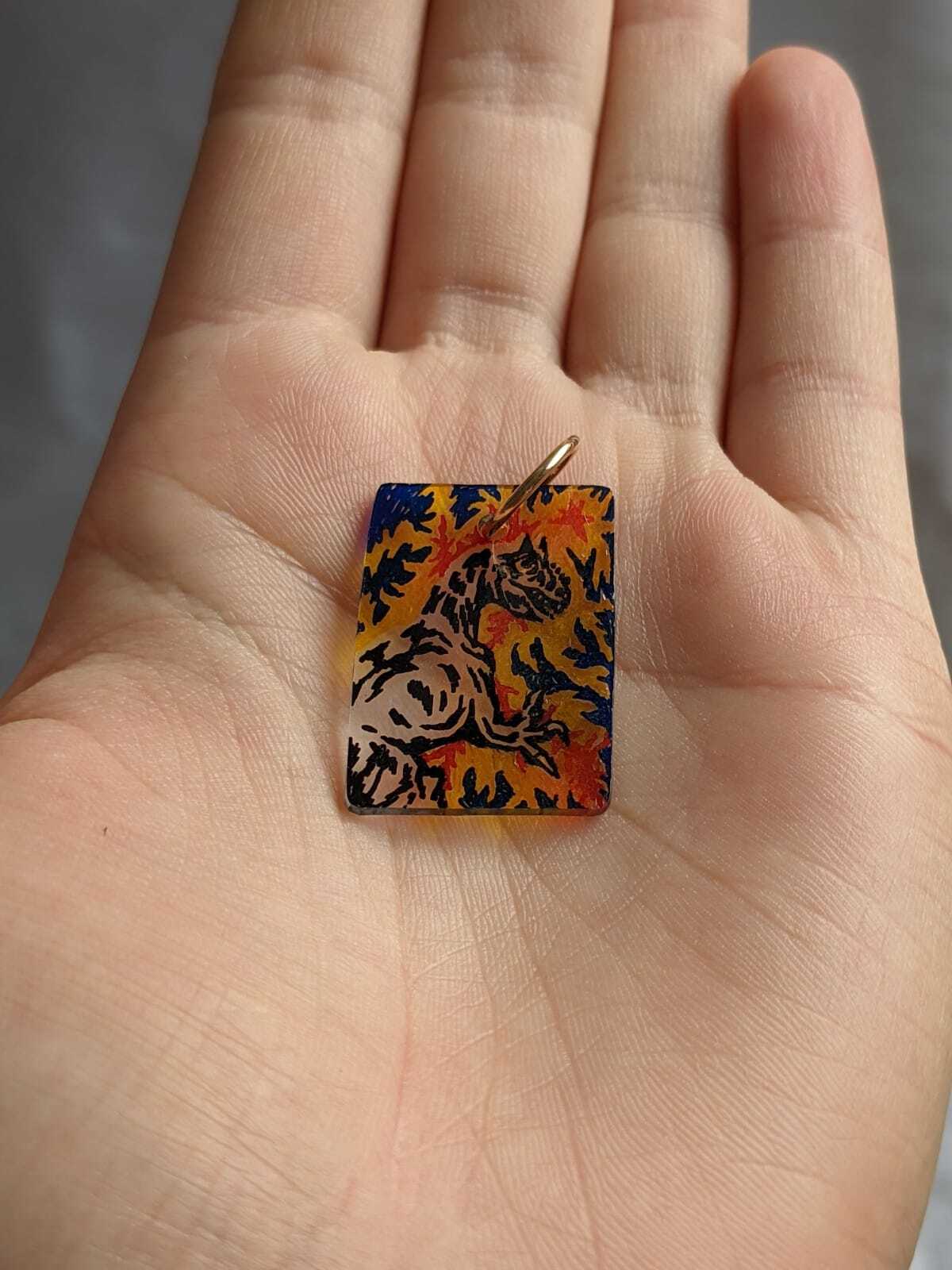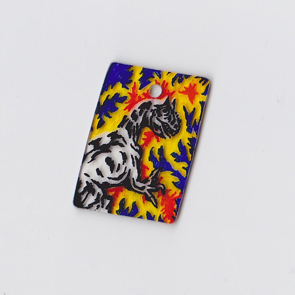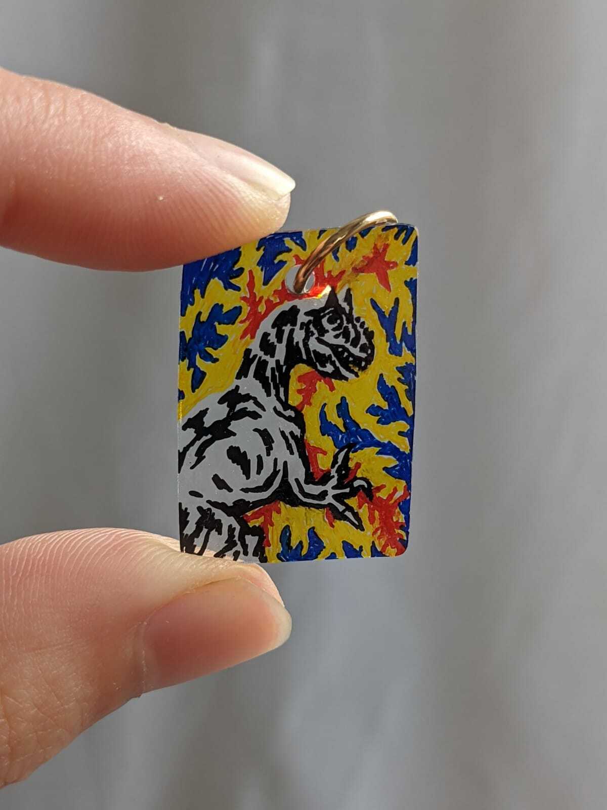 Hand-drawn recycled shrink plastic pendant.
