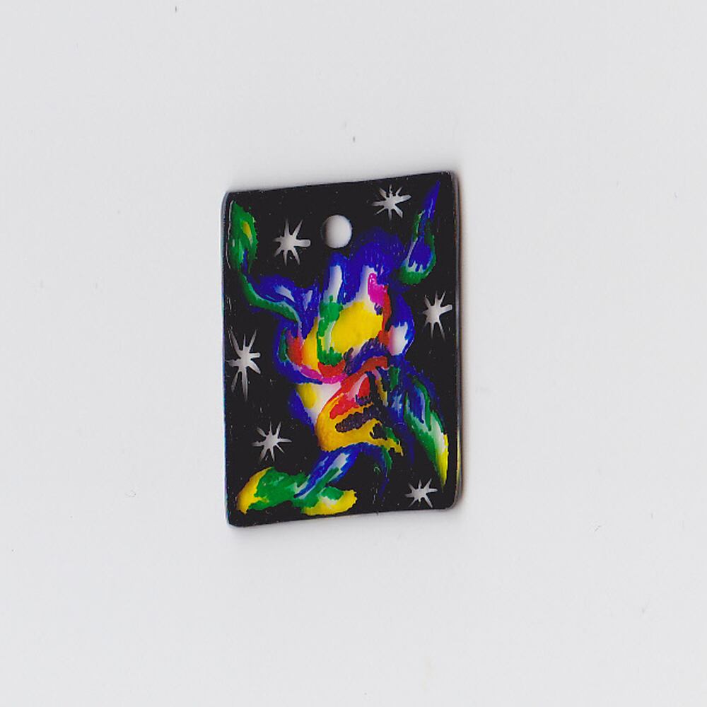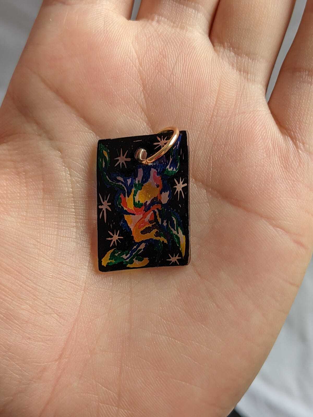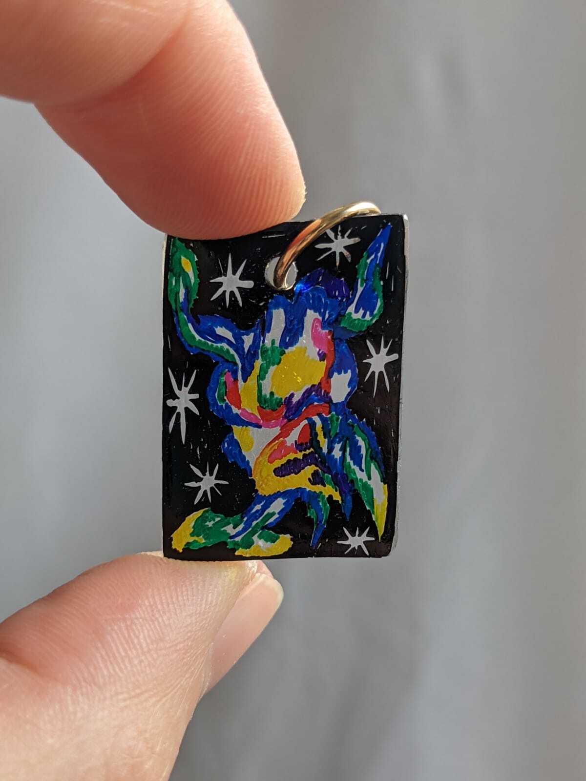 Hand-drawn recycled shrink plastic pendant.